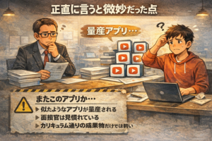 「カリキュラムをこなした人」ではなく「自分で考えて作れる人」です。だからこそ、差がつくのは以下です。